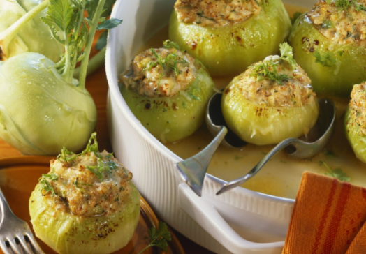 콜라비는 두 개의 단단한 잎 껍질로 둘러싸여 있으며 생으로 먹거나 익혀 먹을 수 있습니다. 이것은 수백 년 동안 독일 요리의 필수품이었습니다. 콜라비의 뿌리와 잎 모두 상당한 양의 영양소를 함유하고 있습니다.