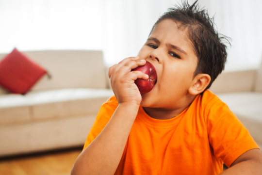 사과는 또한 산성이기 떄문에 사과 주스는 치아 손상을 시킬 수 있습니다.
